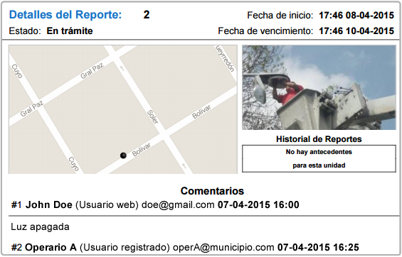 Esta App de uso general permite gestionar la comunicación con los clientes (ciudadanos) de una manera bi-direccional y casi totalmente automatizada, a través de reportes organizados dentro de un catálogo de servicios configurable, conteniendo las distintas situaciones que se puedan encontrar en cada caso, dando un protocolo de respuesta automatizado puertas adentro de la organización Municipal.