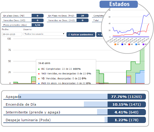 Toda la plataforma posée una serie de indicadores de mucha importancia al que acceden los directores de los servicios, sus funcionarios encargados de área y el propio Alcalde, para poder evaluar día a día la evolución de cada uno de los servicios activos en la plataforma, está claro que “lo que no se mide, no se controla”, por eso en nuestra organización nos tomamos muy en serio el control y seguimiento, fundamentalmente para poder anticiparnos a los problemas con acciones preventivas, y cuando no es posible, con acciones correctivas, esperando causar el menor efecto sobre los servicios afectados y los ciudadanos que los usan. Esta forma de trabajo o de análisis de datos (conocido como big data) permite tomar medidas anticipatorias y de planificación estratégica en pos de mejores servicios y de mejor calidad.